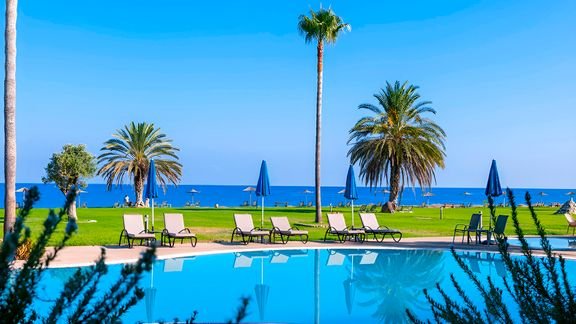 Wypoczynek na Cyprze czeka na Ciebie! Lokalizacja? Pierwsza klasa – położony tuż przy plaży z krystalicznie czystą wodą, gdzie podczas kąpieli możesz zobaczyć żółwie morskie. Doceniany za wakacyjną atmosferę oraz spokój, który można poczuć relaksując się w jednym z 2 basenów. Rozegrasz tutaj mecz w tenisa, poćwiczysz na siłowni lub zregenerujesz się podczas profesjonalnych zabiegów pielęgnacyjnych. Pomysł na wieczór? Spędź czas w pięknym ogrodzie delektując się koktajlem, spróbuj dań z lokalnych i organicznych produktów, a następnie przygotuj się na kolejny cudowny dzień!