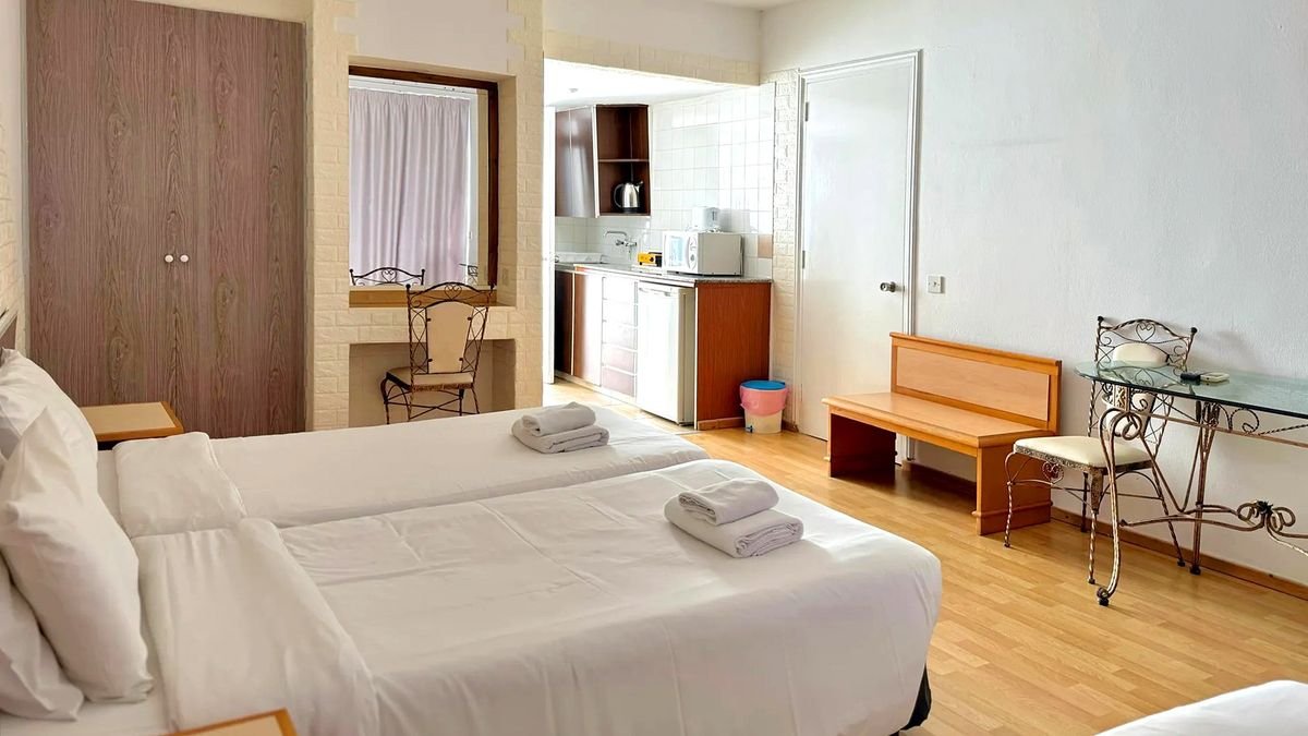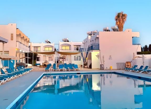 Wybierz się na niezapomniane wakacje do rodzinnego, pełnego śródziemnomorskiego uroku hotelu z doskonałą obsługą i poczuj niepowtarzalny klimat rajskiego Cypru! Wyposażony w przestronne apartamenty i pokoje typu studio, restaurację, 2 świetnie rozmieszczone bary i basen z brodzikiem dla dzieci jest idealnym miejscem na beztroski urlop z dala od zmartwień. Zaledwie niedługi spacer dzieli Gości od klimatycznego i pełnego rozrywek centrum miasteczka Pafos i przepięknego wybrzeża, na którym znaleźć można wiele różnorodnych plaż, doskonałych na opalanie, wodne szaleństwo i romantyczne spacery o zachodzie słońca.