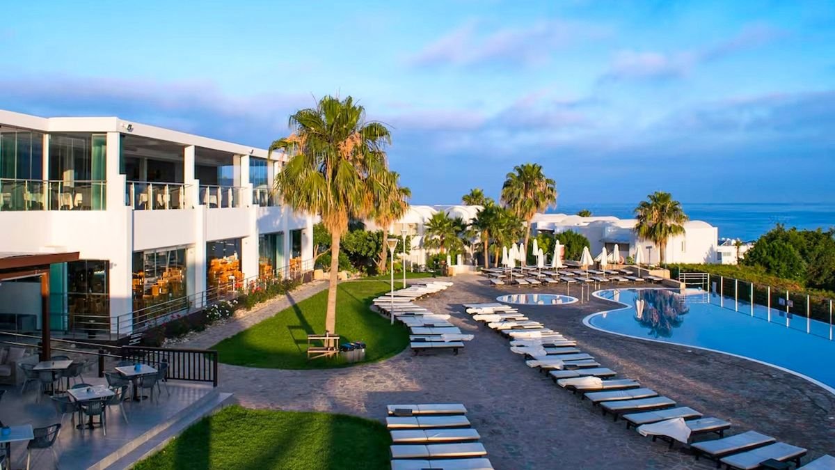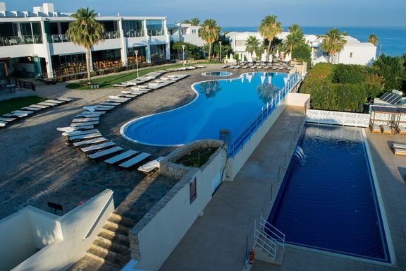 Położony w cichej i spokojnej okolicy, na malowniczym wzniesieniu, oferuje nie tylko piękne widoki, ale również doskonałe udogodnienia, będące gwarancją udanego urlopu! O zadowolenie Gości dba przyjazna obsługa, by ci mogli w pełni korzystać z tego, co oferuje im hotel i jego piękna okolica! Na miejscu są 3 baseny, w tym infinity, brodzik dla najmłodszych i centrum spa, a na smakoszy czekają 2 restauracje z kuchnią lokalną i międzynarodową. Wygodne pokoje z balkonami przyniosą odprężenie przed kolejnym dniem na słonecznej Wyspie Afrodyty, a to, jak go spędzisz, zależy wyłącznie od Ciebie – wypoczywaj na leżaku, leniuchuj na plaży lub zwiedzaj okolicę i poznaj jej najważniejsze atrakcje – dla każdego coś dobrego.