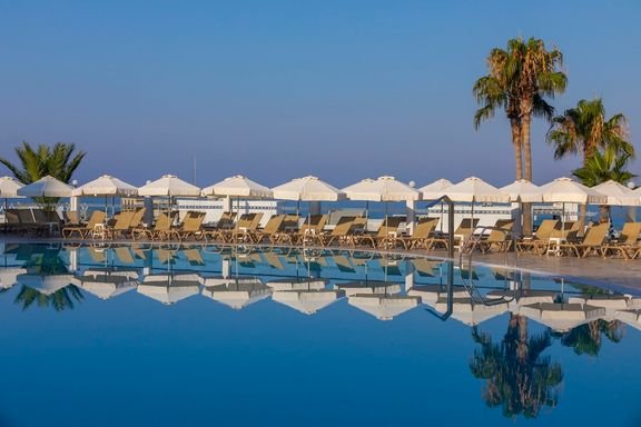 czterogwiazdkowy, zbudowany w 2011 r., odnowiony w 2018 r., 244 pokoje, 3 budynki: główny i 2 boczne, 5 pięter, 2 windy, lobby, całodobowa recepcja, 3 restauracje: Alexander the Great – śniadania i kolacje w formie bufetu, kuchnia międzynarodowa, live-cooking, wieczory tematyczne, w restauracji dostępne menu dla dzieci, Aqua – obiady w formie bufetu, kuchnia międzynarodowa, Evinos Tavern – à la carte, kuchnia śródziemnomorska i grecka, 3 bary: w lobby i 2 przy basenie; przechowalnia bagażu, sejf w recepcji, parking, punkt wymiany walut; bezpłatny internet bezprzewodowy; za opłatą: room-service, pralnia, usługa prasowania, wypożyczalnia samochodów i rowerów (oferta zewnętrzna); akceptowane karty kredytowe: Visa, MasterCard.