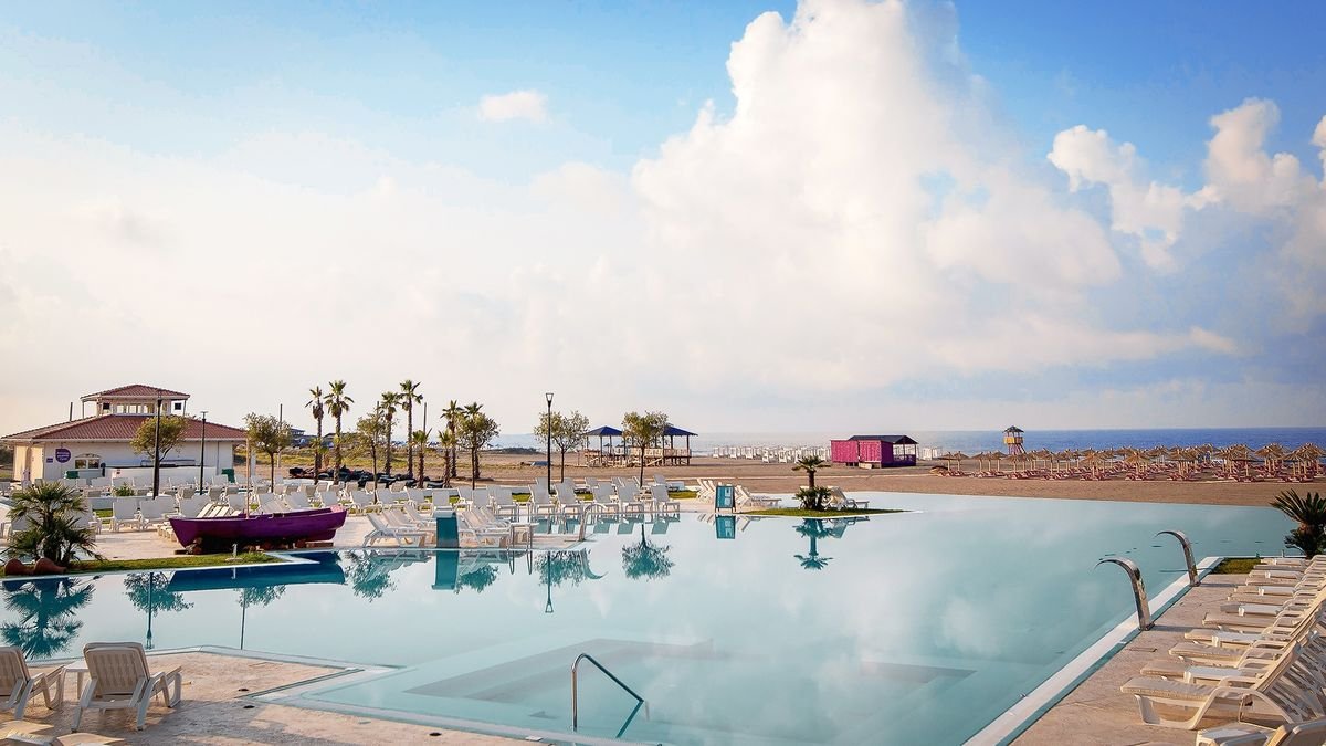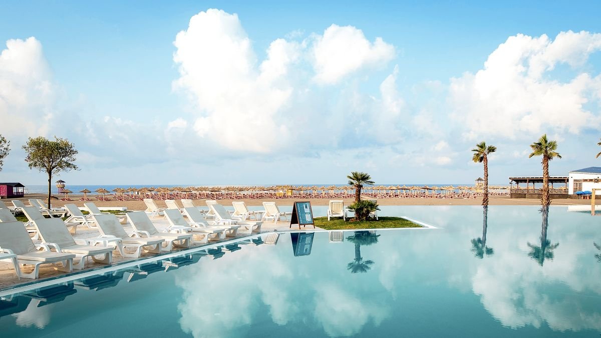 Velika Plaza, publiczna, wydzielona część dla gości hotelu, piaszczysta, szeroka, ok. 12 km długości, bezpośrednio przy hotelu, bezpłatne parasole, leżaki i ręczniki; dmuchany plac zabaw dla dzieci (płatny).