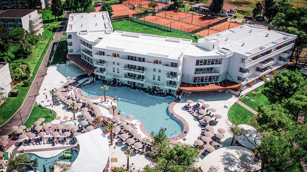 czterogwiazdkowy, odnowiony w 2020 r., 2 budynki: główny i Kiwi, 479 pokoi, 3 piętra, winda, przestronne lobby, całodobowa recepcja, restauracja główna – w budynku głównym, dania w formie bufetu, kuchnia międzynarodowa, dostępne foteliki i menu dla dzieci, 3 restauracje à la carte: Balkan – w budynku Kiwi, kuchnia europejska i orientalna, L’osteria – w budynku głównym, kuchnia włoska, The Knife – w ogrodzie, kuchnia fusion, dania z grilla, 7 barów; minimarket, parking, akcesoria dla niemowląt (podgrzewacze do butelek, wózki; na zapytanie); ogród, bezpłatny internet bezprzewodowy; za opłatą: pralnia, wypożyczalnia samochodów; akceptowane karty kredytowe: Visa, MasterCard.
