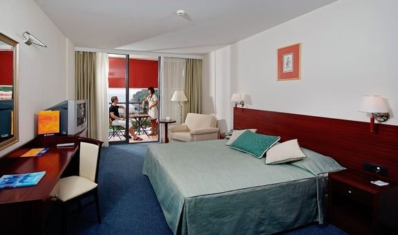 standardowy: 2-os. (możliwość 1 dostawki), ok. 18-20 m², ładny i funkcjonalnie urządzony, klimatyzowany (lipiec, sierpień), łazienka (wanna lub prysznic, wc; suszarka), telewizja satelitarna, telefon, sejf, minibar (płatny); bezpłatne łóżeczko dla dziecka do 2 lat na zamówienie przed przyjazdem; pokoje z widokiem na morze i pokoje z balkonem na zamówienie za dopłatą.