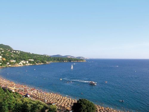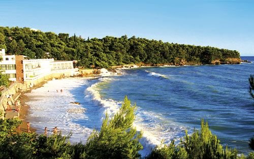PLAŻA: publiczna, wydzielona część dla gości hotelu, piaszczysta, miejscami żwirkowa, długość ok. 2 km, szerokość ok. 40 m, łagodne zejście do morza, ok. 50 m od hotelu, parasole i leżaki płatne (ok. 6 EUR/komplet).
