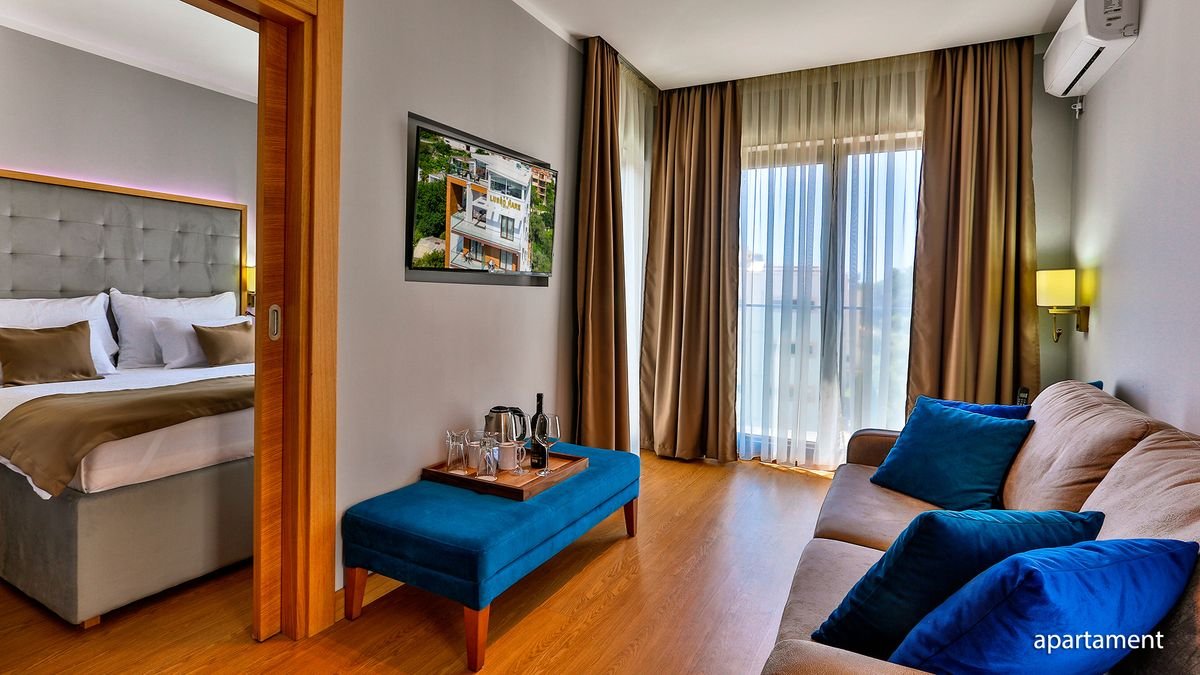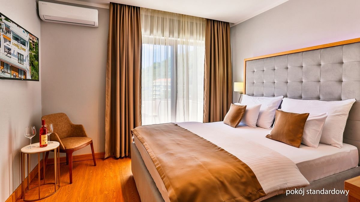 Kameralny, położony w niewielkiej, nadmorskiej miejscowości Bečići, jest świetną propozycją na wakacje we dwoje lub w gronie przyjaciół. Klimatyzowane, eleganckie pokoje, nowoczesne wnętrza oraz gościnna i pomocna obsługa zapewnią pełen komfort wypoczynku, a piękne widoki z hotelowej restauracji na długo pozostaną w pamięci. W upalne dni wybierz się na pobliską plażę, uznawaną na jedną z najpiękniejszych w Czarnogórze, spędź czas opalając się i podziwiaj, jak górzysty teren harmonijnie łączy się z krystalicznym Adriatykiem. W dniu wolnym od plażowania, warto odwiedzić centrum Budvy pełnej zabytków, atrakcji i wyśmienitych restauracji.