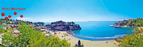 publiczna, kamienista, kamieniste zejście do morza, ok. 200 m od hotelu, parasole, leżaki i materace płatne; ok. 3 km od Ulcinj znajduje się Velika Plaža - najdłuższa piaszczysta plaża w Czarnogórze.