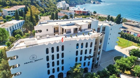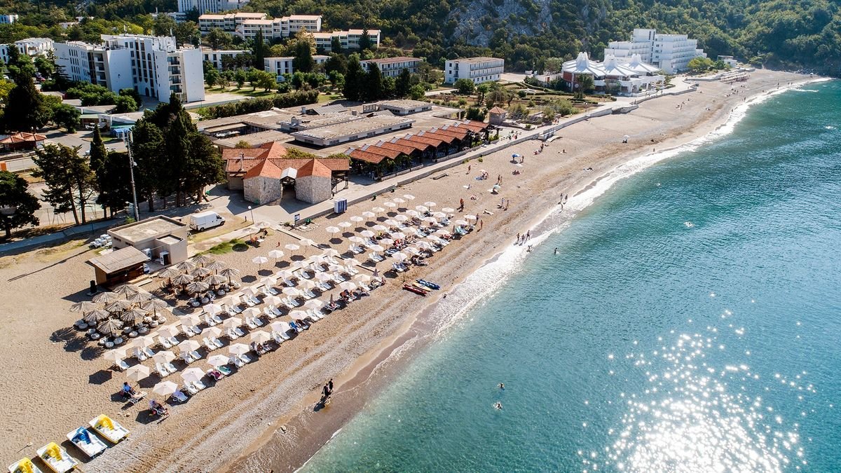 hotelowa, piaszczysto-żwirowa, ok. 400 m długości, bezpośrednio przy hotelu, bezpłatne parasole i leżaki; Čanj, publiczna, ok. 500 m od hotelu.