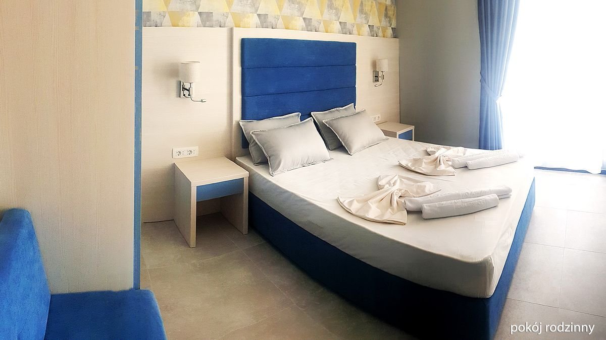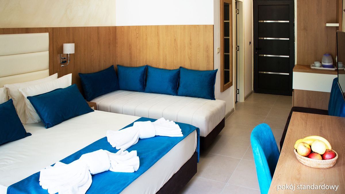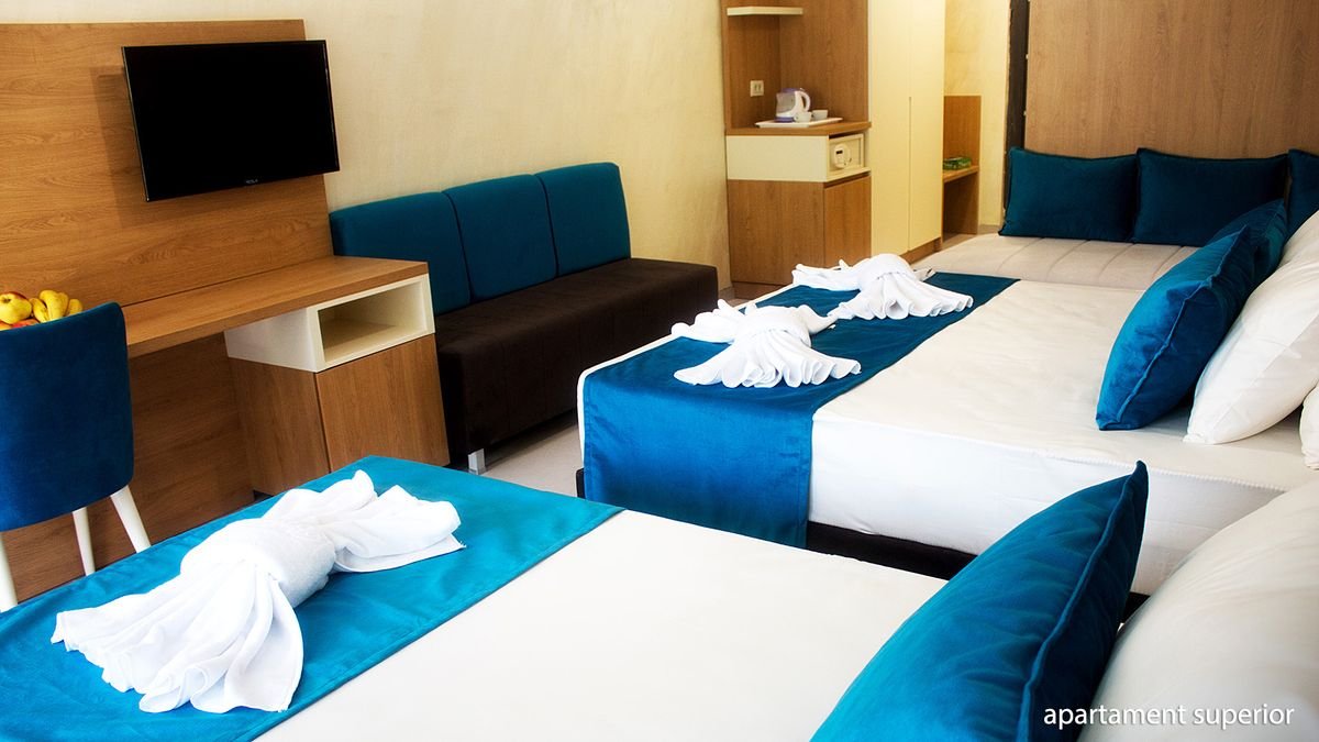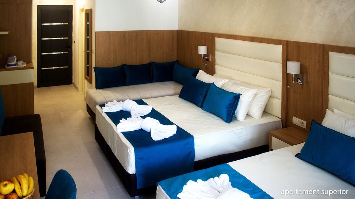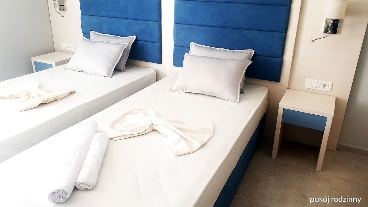 standardowy: 2-os. (możliwość 1 dostawki), ok. 24 m², klimatyzowany, łazienka (prysznic, wc; suszarka, komplet kosmetyków, szlafrok, kapcie), internet bezprzewodowy, telewizja satelitarna, lodówka, sejf; balkon; superior: 2-os. (możliwość 2 dostawek), ok. 28 m², wyposażenie jak w pokoju standardowym; pokój superior za dopłatą; rodzinny: dla maks. 4 os., ok. 35 m², 2 sypialnie oddzielone drzwiami, wyposażenie jak w pokoju standardowym; pokój rodzinny za dopłatą; apartament superior: dla maks. 4 os., ok. 40 m², 2 sypialnie wydzielone optycznie, wyposażenie jak w pokoju stamdardowym; apartament za dopłatą.