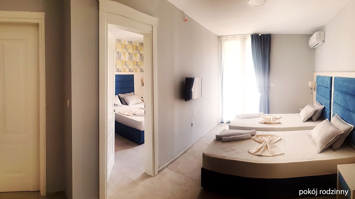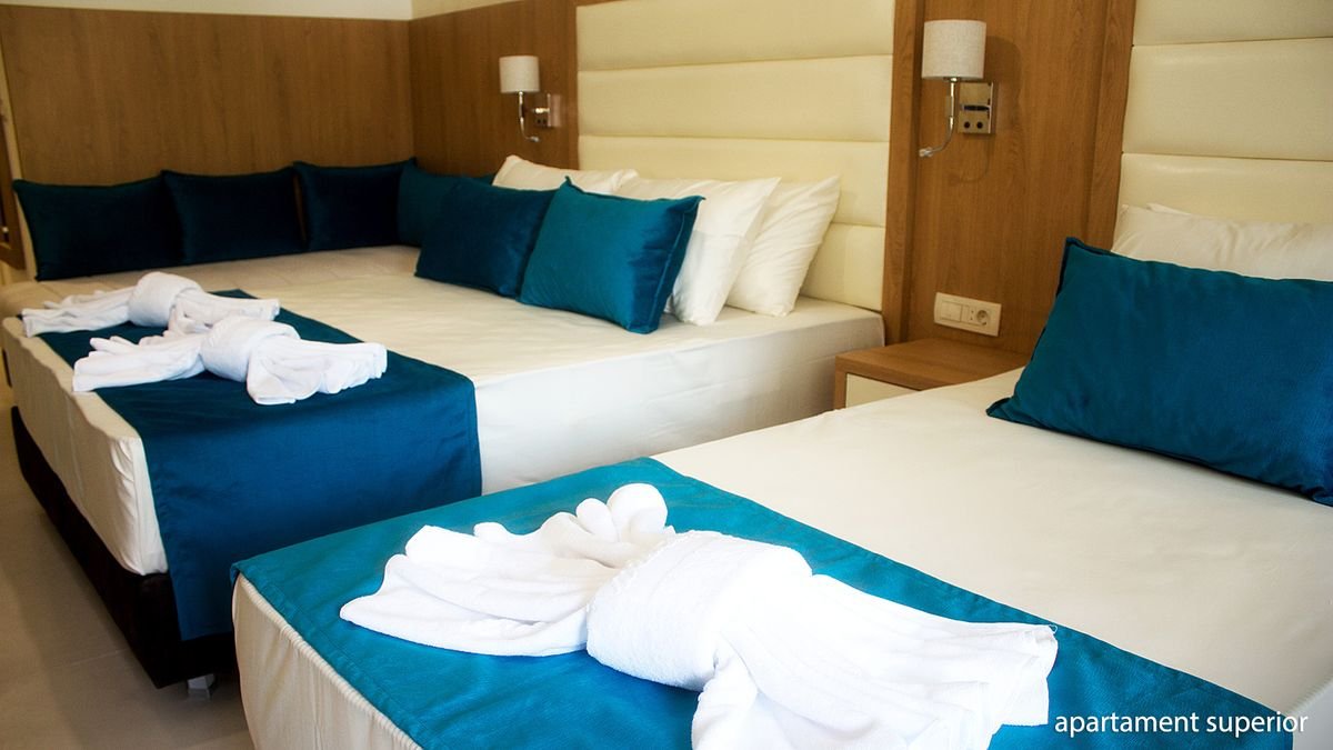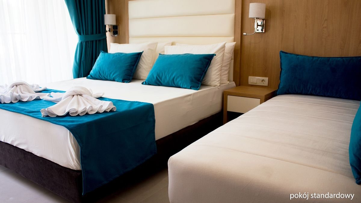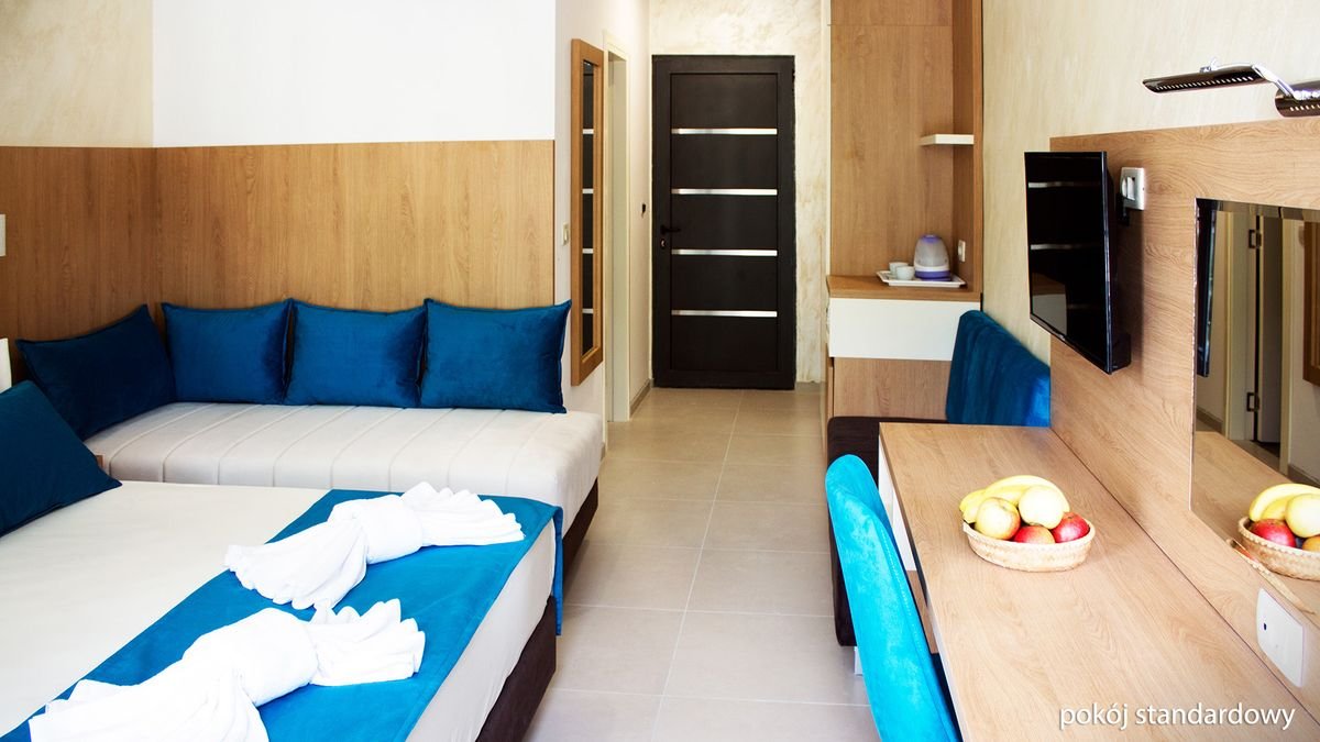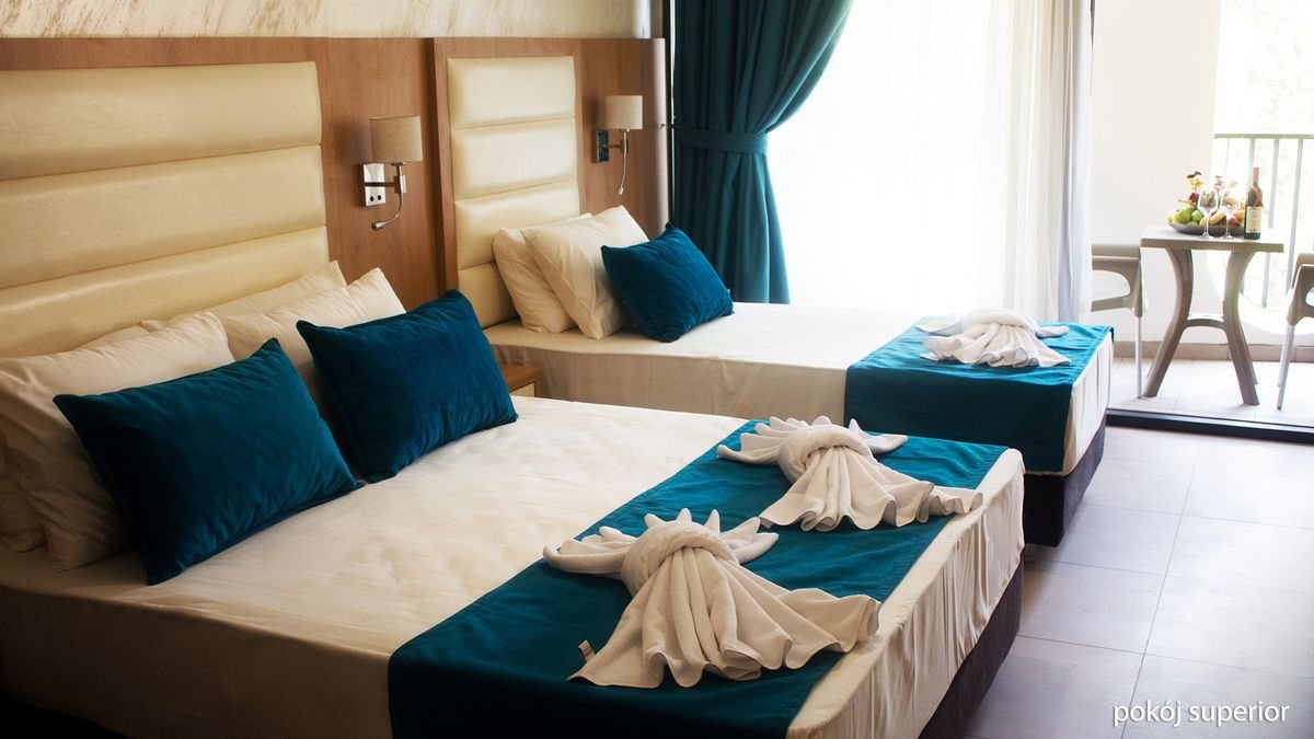 standardowy: 2-os. (możliwość 1 dostawki), ok. 24 m², klimatyzowany, łazienka (prysznic, wc; suszarka, komplet kosmetyków, szlafrok, kapcie), internet bezprzewodowy, telewizja satelitarna, lodówka, sejf; balkon; superior: 2-os. (możliwość 2 dostawek), ok. 28 m², wyposażenie jak w pokoju standardowym; pokój superior za dopłatą; rodzinny: dla maks. 4 os., ok. 35 m², 2 sypialnie oddzielone drzwiami, wyposażenie jak w pokoju standardowym; pokój rodzinny za dopłatą; apartament superior: dla maks. 4 os., ok. 40 m², 2 sypialnie wydzielone optycznie, wyposażenie jak w pokoju stamdardowym; apartament za dopłatą.