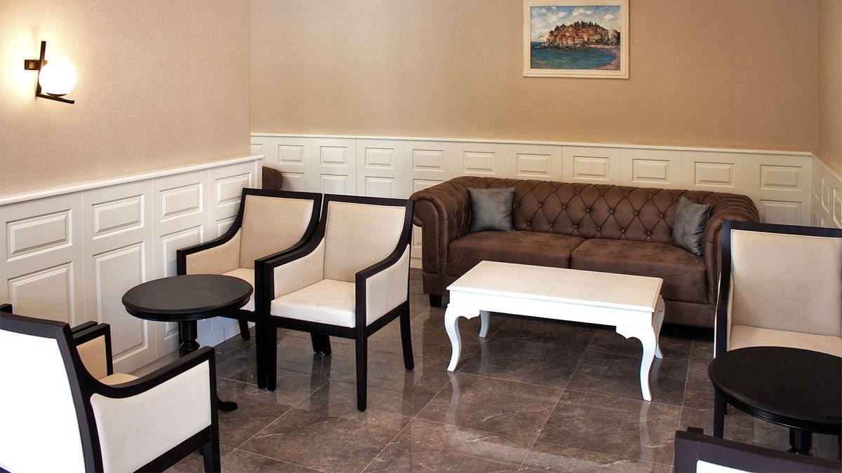 czterogwiazdkowy, odnowiony w 2019 r., 250 pokoi, budynek główny z aneksem i villą, całodobowa recepcja, restauracja z tarasem – dania w formie bufetu oraz à la carte z kuchnią włoską i śródziemnomorską (wymagana wcześniejsza rezerwacja), menu dla dzieci, 4 bary; parking; sala konferencyjna, kawiarenka internetowa, bezpłatny internet bezprzewodowy; za opłatą: pralnia, wypożyczalnia samochodów i rowerów.