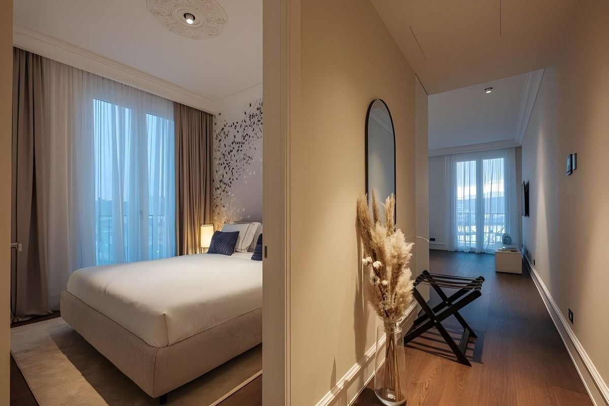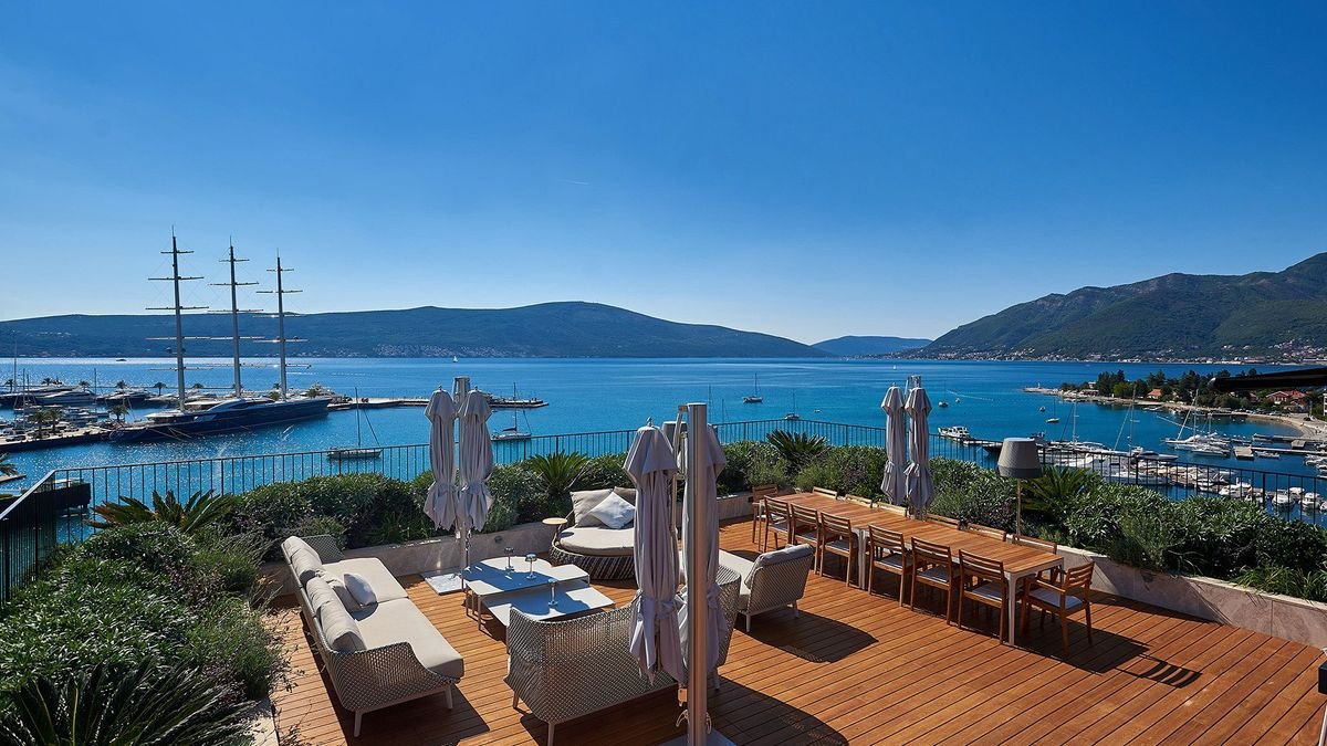 Elegancki, nowoczesny i kameralny – Porto Palace to luksusowy hotel położony niedaleko centrum malowniczego Tivatu. Zaledwie 18 przestronnych pokoi, urządzonych w ciepłych kolorach ziemi, zapewnia wyjątkową atmosferę prywatności i komfortu. Na dachu czeka taras i basen z zapierającym dech widokiem na góry i morze, a dla aktywnych przygotowano centrum fitness i elegancką strefę spa. Goście chwalą wyśmienitą kuchnię w restauracji oraz profesjonalną obsługę na najwyższym poziomie. Jeśli jesteś koneserem win, odwiedź stylowy bar i pozwól sobie na wieczorny relaks z kieliszkiem w dłoni. To doskonały wybór dla tych, którzy szukają spokoju, klasy i wyjątkowego klimatu!