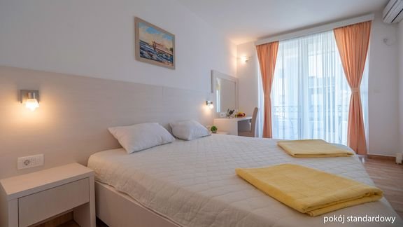 standardowy: 2-os., ok. 25 m², ładny i funkcjonalnie urządzony, klimatyzowany, łazienka (prysznic, wc; suszarka), internet bezprzewodowy, telewizja satelitarna, sejf, telefon, minibar (płatny), żelazko i deska do prasowania; bezpłatne łóżeczko dla dziecka do 2 lat na zamówienie przed przyjazdem; balkon (stolik i krzesełka); standardowy z dostawką: 2-os. (możliwość 1 dostawki), ok. 31 m², wyposażenie jak w pokoju standardowym; balkon (stolik i krzesełka); rodzinny: dla maks. 4 os., ok. 31-35 m², wyposażenie jak w pokoju standardowym; balkon (stolik i krzesełka).