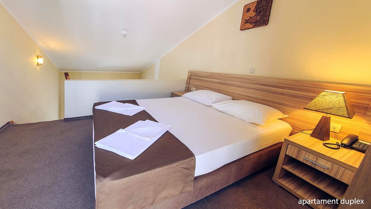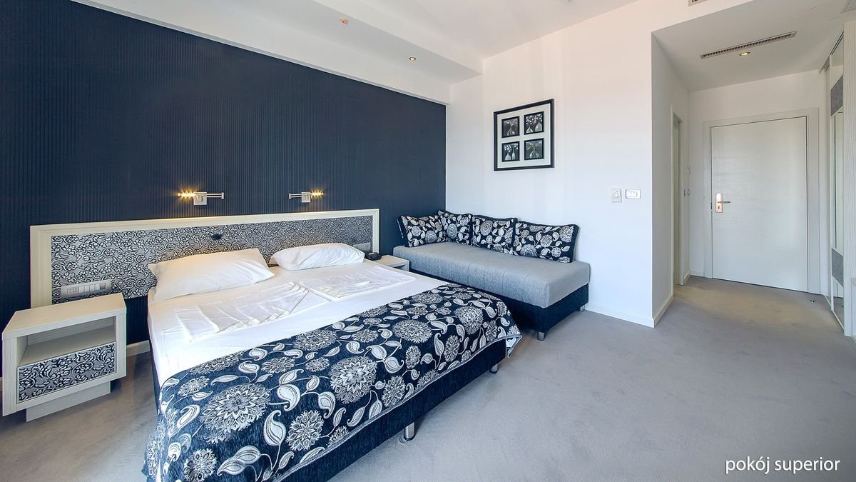 standardowy: 2-os. (możliwość 1 dostawki), ok. 23 m², klimatyzowany, łazienka (prysznic, wc; suszarka), internet bezprzewodowy, telewizja satelitarna, lodówka, sejf; superior: 2-os. (możliwość 1 dostawki), ok. 28 m², wyposażenie jak w pokoju standardowym; pokój superior za dopłatą; apartament duplex: 2-os. (możliwość 2 dostawek), ok. 45 m², pokój dzienny i sypialnia; apartament duplex za dopłatą.