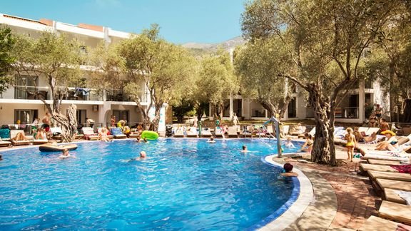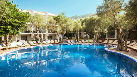 Otoczony śródziemnomorską roślinnością i oliwnym gajem, położony tylko kilka kroków od plaży, w pięknym, starym mieście Petrovac, jest wymarzonym wakacyjnym celem. To rozległy kompleks z budynkiem głównym i willami z komfortowymi pokojami i apartamentami oraz bogatym zapleczem rekreacyjnym. Na terenie resortu aż 4 baseny oraz mnóstwo rozrywek dla dzieci – plac zabaw, minikluby i animacje. Po dniu pełnym wrażeń na chwilę relaksu zaprasza hotelowe spa z gabinetami masażu. Posiłki w popularnej formule all inclusive serwowane są w wyjątkowej restauracji z tarasem i zapierajacym dech widokiem na morze, na miejscu są rownież 3 bary i kawiarnia. To świetna baza wypadowa do zwiedzania urokliwej okolicy, niedaleko stąd do Budvy – miasta pełnego zabytków i wakacyjnych atrakcji.