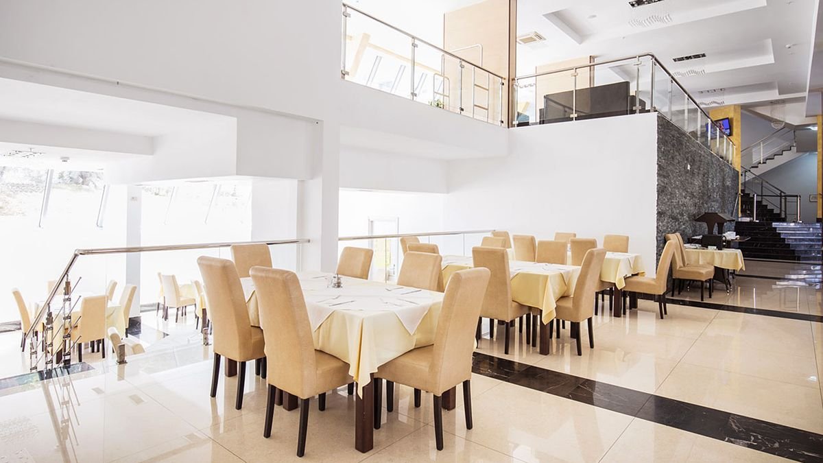 czterogwiazdkowy, otwarty w 2008 r., odnowiony w 2014 r., 276 pokoi, budynek główny, 3 piętra i 11 willi, restauracja Vile Oliva z tarasem z widokiem na morze – dania w formie bufetu oraz à la carte, 3 bary, w tym przy basenie i w lobby, kawiarnia; sala konferencyjna, kawiarenka internetowa, bezpłatny internet bezprzewodowy w lobby; za opłatą: room-service, fryzjer, parking i garaż, pralnia, wypożyczalnia rowerów; akceptowane karty kredytowe: Visa i MasterCard.