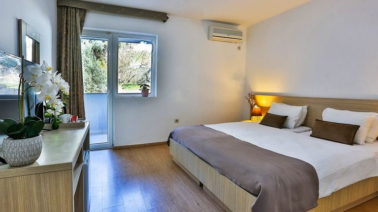 Idealne miejsce dla osób, które chcą wypocząć w sercu jednego z najpiękniejszych zakątków Czarnogóry. Kameralny, położony w centrum malowniczej miejscowości Sveti Stefan, jest doskonałą bazą wypadową do odkrywania uroków okolicy. Krótkim spacerem dotrzesz stąd na plażę, gdzie odpoczniesz w promieniach słońca i popływasz w krystalicznym morzu, a w pobliżu znajdziesz wiele klimatycznych restauracji, w których zasmakujesz lokalnych specjałów i poczujesz prawdziwą bałkańską atmosferę. Podczas pobytu koniecznie zaplanuj czas na wizytę w oddalonej o kilka kilometrów, słynącej z zabytkowej starówki Budvie. Po powrocie naładuj baterie w komfortowym, dobrze wyposażonym pokoju, a wybierając ten z widokiem na morze, będziesz cieszyć się wyjątkową scenerią o każdej porze dnia.