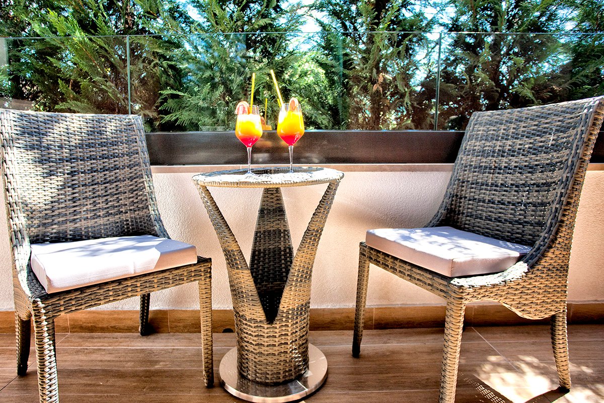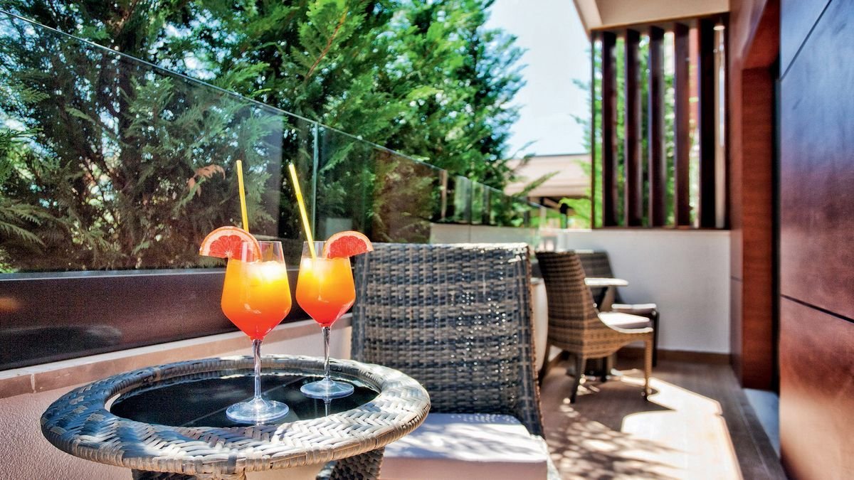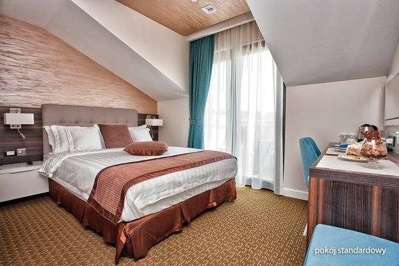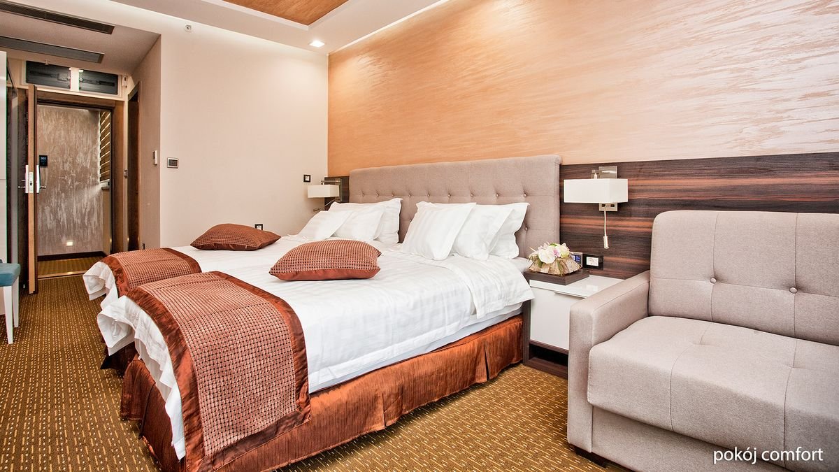 standardowy: 2-os., ok. 17 m², elegancki i nowoczesny, klimatyzowany, łazienka (prysznic, wc; suszarka), internet bezprzewodowy, telewizja satelitarna, telefon, zestaw do kawy/herbaty, sejf, minibar (płatny wg konsumpcji); balkon (stolik i krzesełka), widok na ogród; comfort: 2-os. (możliwość 1 dostawki – sofa), ok. 21 m², elegancki i nowoczesny, wyposażenie jak w pokoju standardowym; bezpłatne łóżeczko dla dziecka do 2 lat na zamówienie przed przyjazdem; balkon (stolik i krzesełka); pokój comfort za dopłatą; suite: 2-os. (możliwość 1 lub 2 dostawek), ok. 42 m², elegancki i nowoczesny, wyposażenie jak w pokoju standardowym; bezpłatne łóżeczko dla dziecka do 2 lat na zapytanie przed przyjazdem; balkon (stolik i krzesełka), widok na park; suite za dopłatą.
