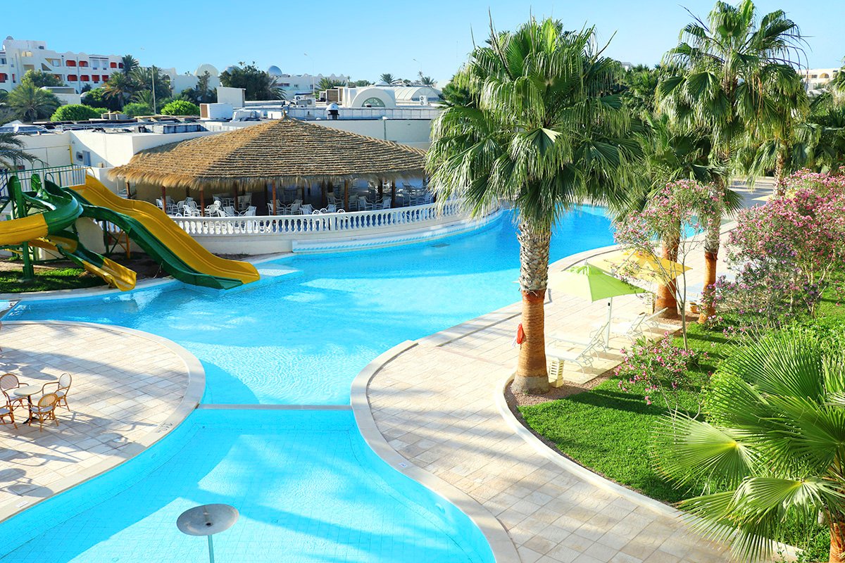 2 baseny, woda słodka, ok. 400 m², gł. do 1,9 m oraz 500 m², gł. 1,4 m, zjeżdżalnie; 2 brodziki: woda słodka, gł. do 0,9 m; przy basenach bezpłatne parasole, leżaki i materace, ręczniki płatne (ok. 2 TND/dzień); kryty basen, woda słodka, ok. 100 m², gł. do 1,9 m; 2 korty tenisowe z wypożyczalnią sprzętu, mini-golf, piłka nożna, siatkówka, aerobic, tenis stołowy, piłka nożna, petanka, rzutki, strzelanie z łuku, lekcje tańca; plac zabaw dla dzieci, miniklub (4-12 lat), amfiteatr, dyskoteka, animacje dla dorosłych i dzieci; za opłatą: bilard, gry elektroniczne, balneoterapia; ok. 1 km od hotelu pole golfowe (za opłatą).