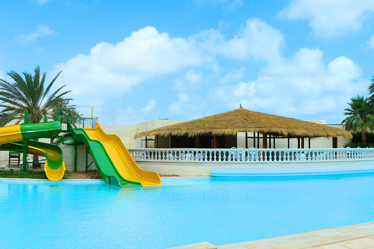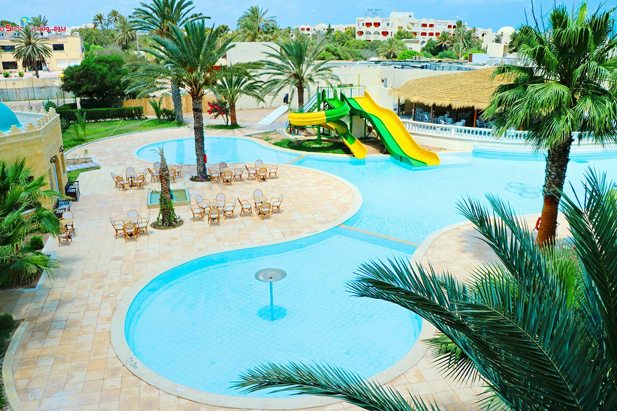 Zaprojektowany i urządzony w typowo dżerbańskim stylu, odtwarzającym architekturę berberyjskich zamków, jest wygodnym miejscem na rodzinne wakacje. Jasna kolorystyka wnętrz, misterne detale, przyjemny ogród i ładne baseny wprawiają w pogodny, wakacyjny nastrój. Znakomita baza wypadowa do odkrywania ciekawych zakątków Djerby. Mocne trzy gwiazdki, zdecydowanie wart swojej ceny!