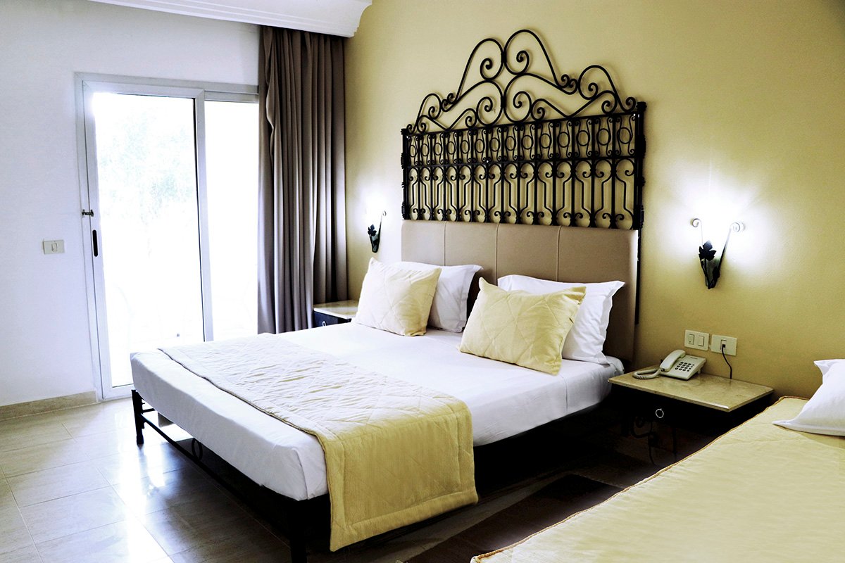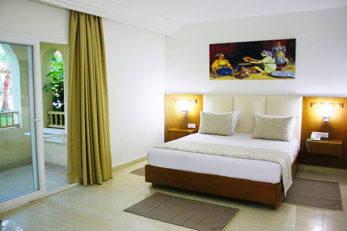 standardowy: 2-os. (możliwość 1 dostawki dla os. dorosłej lub 2 dostawek dla dzieci), ok. 15 m², zadbany, klimatyzowany, łazienka (wanna, prysznic, wc), telefon, za opłatą: telewizor (ok. 5 TND/dzień), mini-bar (ok. 5 TND/dzień, konsumpcja płatna dodatkowo); bezpłatne łóżeczko dla dziecka do 2 lat na zamówienie przed przyjazdem; balkon lub taras.