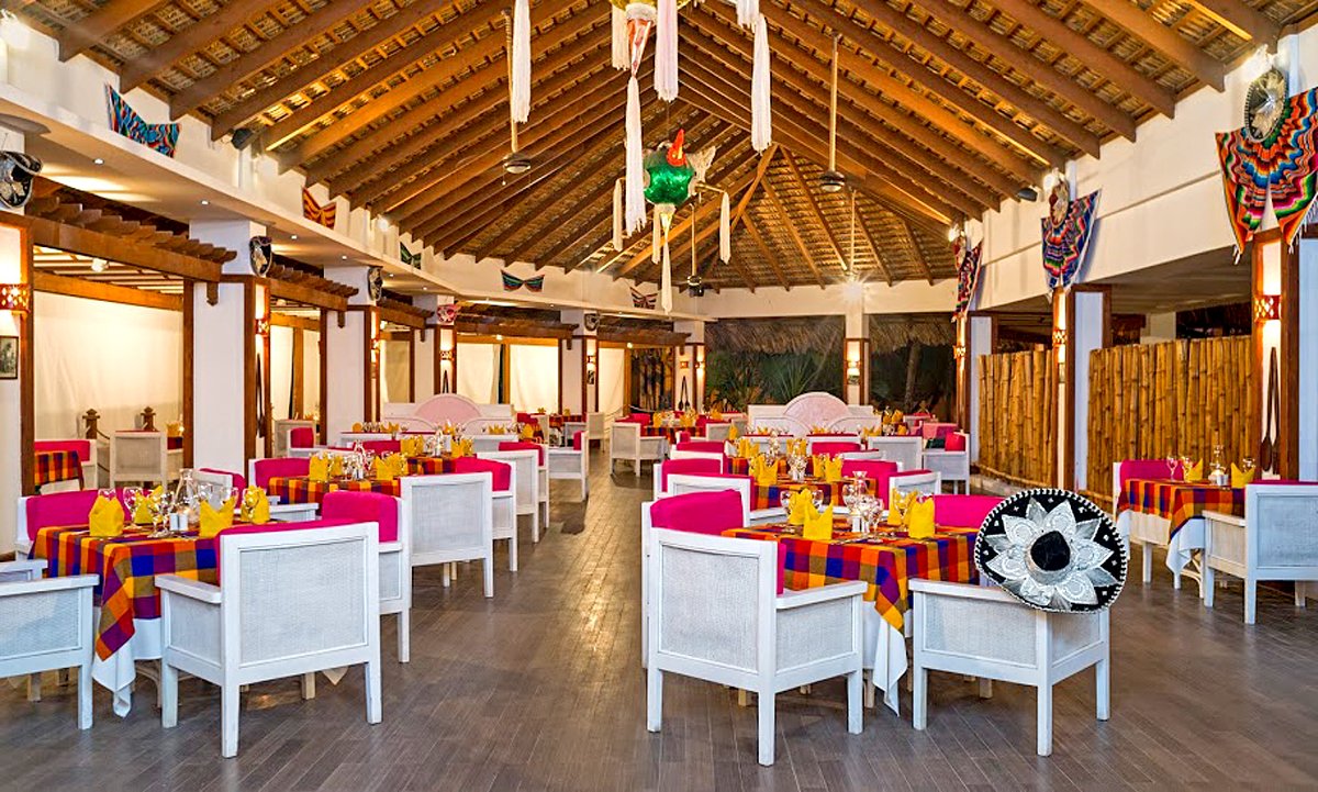 śniadanie (6.30-11.00), obiad (12.30-15.00), kolacja (18.30-22.00) w formie bufetu w restauracji Cayuco; lokalne napoje bezalkoholowe (10.00-2.00, 3.00-6.00) i alkoholowe (10.00-2.00, w godz.: 3.00-6.00 wino i piwo) w wyznaczonych barach; wymagane noszenie opasek all inlusive.