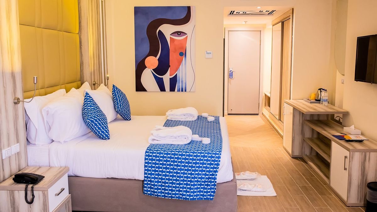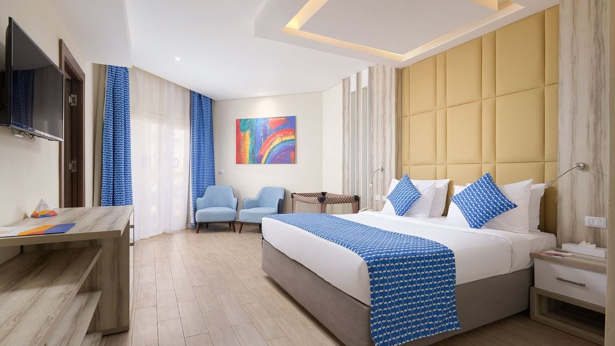 Spędź fantastyczne wakacje w Egipcie w eleganckim i komfortowym hotelu położonym tuż przy piaszczystej plaży! Na miejscu aż 5 restauracji z urozmaiconą kuchnią, 6 barów oraz kilka basenów, gdzie Goście uwielbiają relaksować się z zimnym koktajlem w ręku. Dla miłośników sportu i rozrywki przygotowano bogatą ofertę sportowo-rekreacyjną, od gier zespołowych i siłownię, po zajęcia jogi czy zumby. Najmłodszym spodobają się tu kolorowe zjeżdżalnie, zabawa w miniklubie lub kreatywne animacje. Po dniu pełnym opalania i licznych atrakcji wypocznij w funkcjonalnie wyposażonych pokojach i naładuj baterie na kolejne dni słonecznego urlopu!