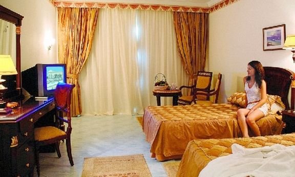 pięciogwiazdkowy, stylowy, zbudowany w 2007 r., 501 pokoi, kilka budynków, 2-4 piętra, przestronne i eleganckie lobby, całodobowa recepcja, restauracja główna Noah’s Ark – dania w formie bufetu, dostępne foteliki dla dzieci, dania wegetariańskie, 3 restauracje à la carte: Al Darwish – orientalna, La Dorada – owoce morza, Da Renato – włoska; bary: Cincinnati w lobby, Aurora, Dolphin przy basenie, 2 bary na plaży: Petra i Sharm El Arab Bay, La Dorada bar, bar w dyskotece (po godz. 24.00 napoje płatne), sklep z pamiątkami; sala balowa na 600 osób, centrum konferencyjne, ogród; za opłatą: punkt internetowy w lobby, room-service, fryzjer, lekarz na wezwanie, pralnia; akceptowane karty kredytowe: Visa, MasterCard.