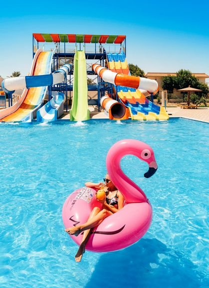 •Aquapark z 7 zjeżdżalniami, podgrzewany w sezonie zimowym•przy basenach bezpłatne parasole, leżaki, materace i ręczniki