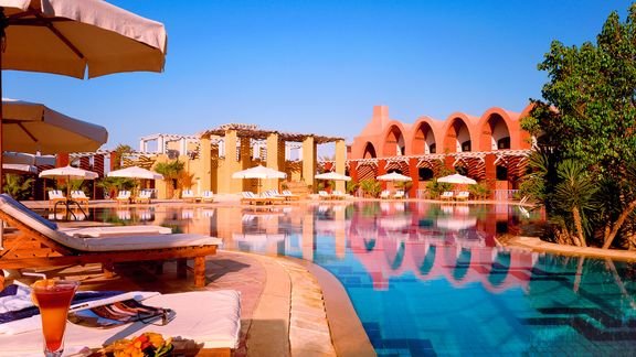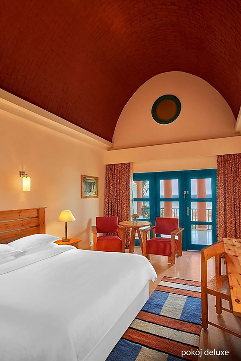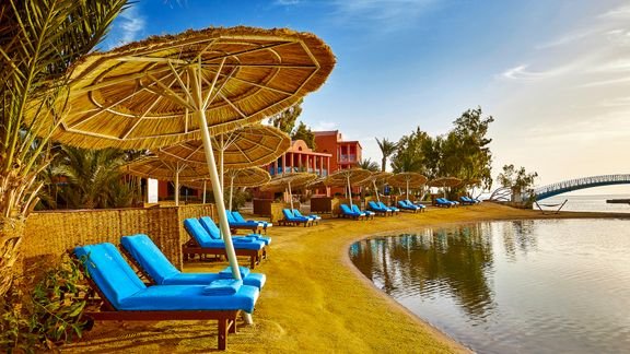 Położony na 9 wyspach Morza Czerwonego w słynnej lagunie El Gouna, został zaprojektowany przez znanego architekta Michaela Gravesa. Komfortowe i przestronne pokoje znajdują w budynkach wzorowanych na architekturze starożytnego Egiptu. Goście mają do dyspozycji szeroki wybór barów i restauracji, w tym bar na plaży objęty all inclusive. Hotel oferuje także wiele możliwości na aktywne spędzenie czasu, są tu 2 duże baseny, centrum spa, a w okolicy można znaleźć świetne miejsca do nurkowania. Zrelaksuj się i ciesz wypoczynkiem z pięknym widokiem na morze w tle.