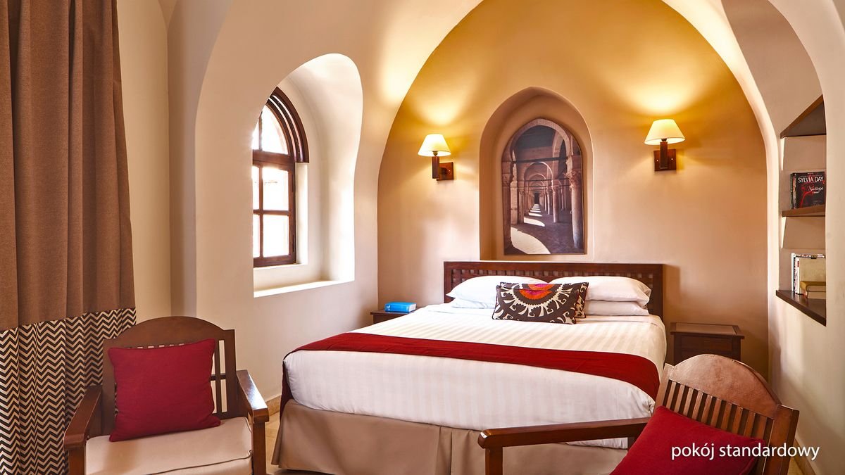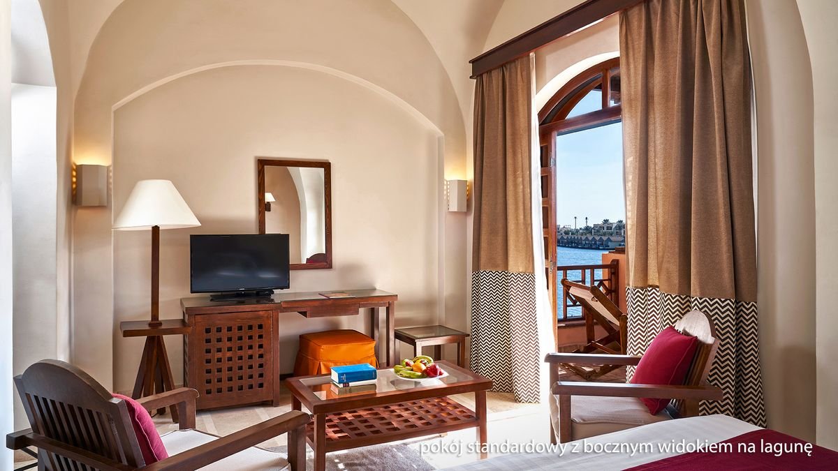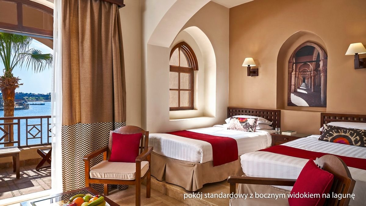 Stylowy, utrzymany w tradycyjnym egipskim stylu oferuje świetne warunki do wypoczynku połączonego z zabawą. Przytulne i komfortowe pokoje są wyposażone we wszelkie udogodnienia i polecają się na relaks po gorącym dniu spędzonym na leżaku przy basenie lub po rozrywkowym wieczorze w centrum El Gouny. Z hotelowego tarasu i części pokoi można podziwiać piękny widok na lagunę i piękne nabrzeże z prywatną plażą – to doskonałe miejsce na romantyczny wieczór.