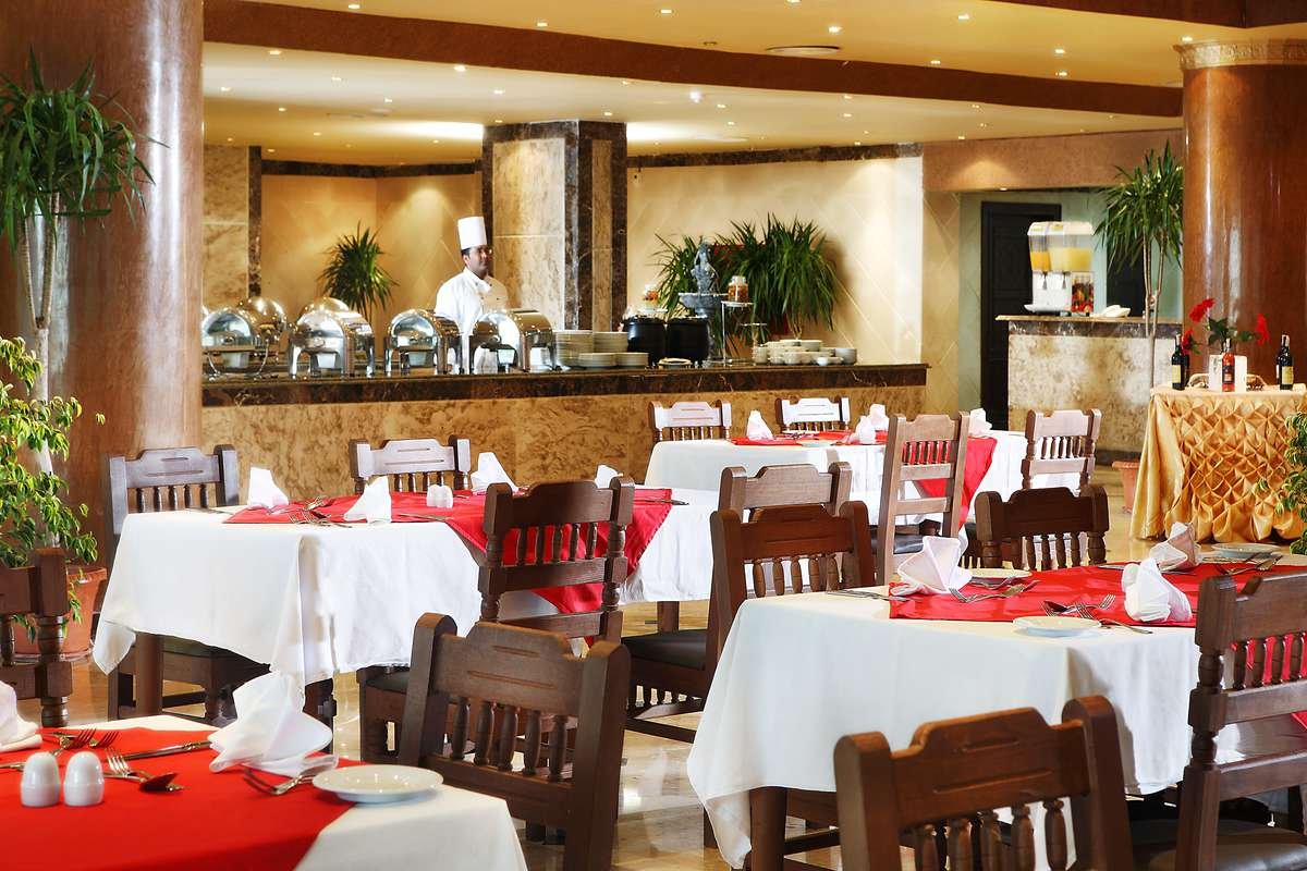 śniadanie (7.00-10.30), obiad (13.00-15.00), kolacja (19.00-22.00) w formie bufetu w restauracji głównej; przekąski (12.00-16.00) w wyznaczonych barach; kawa, herbata i ciastko (15.00-17.00) w barze w lobby; napoje bezalkoholowe oraz lokalne napoje alkoholowe w wyznaczonych barach (10.00-24.00); restauracje à la carte dostępne bezpłatnie raz na pobyt (wymagana wcześniejsza rezerwacja); wymagane noszenie opasek all inclusive.