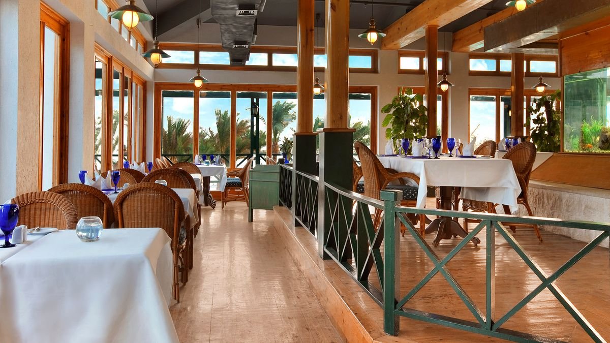 śniadanie (6.30-10.30), obiad (13.00-15.00), kolacja (18.30-22.30) w formie bufetu w restauracji Pebbles; przekąski w barze przy plaży (13.00-16.00); lokalne napoje bezalkoholowe i alkoholowe w barze w lobby (10.00-24.00); raz na pobyt kolacja w restauracji à la carte La Casa (ustalone menu; wymagana wcześniejsza rezerwacja); wymagane noszenie opasek all inclusive.
