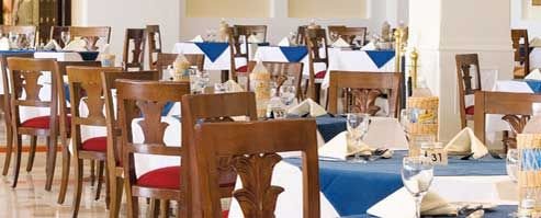 śniadanie (7.00-10.30), obiad (13.00-15.00), kolacja (18.30-22.30) w formie bufetu w restauracji głównej; przekąski pomiędzy posiłkami w wyznaczonym barze; napoje bezalkoholowe i lokalne napoje alkoholowe w wyznaczonych barach (10.00-23.00); wymagane noszenie opasek all inclusive.