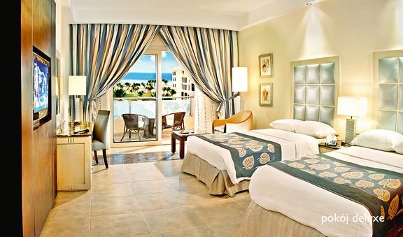 deluxe: 2-os. (możliwość 1 lub 2 dostawek), ok. 48 m², indywidualnie sterowana klimatyzacja, łazienka (prysznic lub wanna, wc; suszarka), telewizja satelitarna, telefon, sejf, minibar (płatny); bezpłatne łóżeczko dla dziecka do 2 lat na zamówienie przed przyjazdem; balkon lub taras (stolik, krzesełka); superior: 2-os. (możliwość 1 lub 2 dostawek), ok. 48 m², wyposażenie jak w pokoju deluxe, dodatkowo szlafrok i kapcie, minibar i kosz owoców na powitanie; balkon lub taras (stolik, krzesełka), widok na morze; widok na morze w pokoju deluxe i pokój superior na zamówienie, za dopłatą.