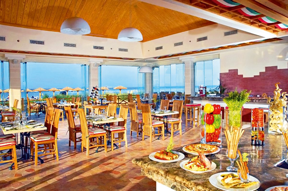 śniadanie (7.00-10.00), obiad (12.30-15.00), kolacja (18.30-22.00) w formie bufetu w restauracji Palm, raz na pobyt kolacja w restauracji à la carte: meksykańska i włoska (wymagana wcześniejsza rezerwacja); przekąski (10.30-12.00, 12.30-17.00) w wyznaczonych barach, lody (12.00-17.00) w barze przy basenie; lokalne napoje bezalkoholowe i alkoholowe (24h) w barze w lobby; dodatkowo: bilard, wypożyczenie rowerów, kort tenisowy (2 godz./tydz./pokój); wymagane noszenie opasek all inclusive.