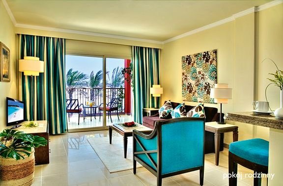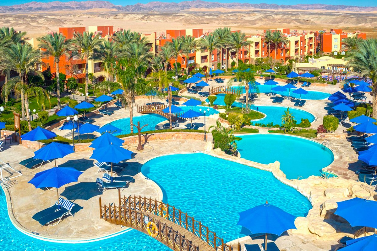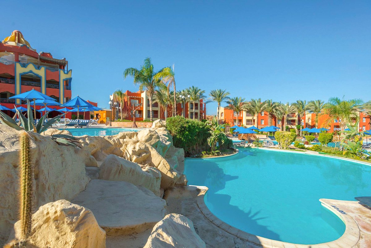 Położony w malowniczej zatoce Jabal Al Rosas Bay, blisko pięknej piaszczystej plaży z bajeczną rafą koralową, gdzie podziwiać można rybki w tęczowych kolorach, jest idealnym miejscem dla pasjonatów sportów wodnych, a szczególnie nurkowania i snurkowania. Hotel jest ładnie zaprojektowany, czerwone budynki w niskiej zabudowie zajmują rozległy zadbany teren. Duży, przedzielony mostkami kompleks basenowy z barem swim-up to miejsce relaksu i beztroskiej zabawy także dla najmłodszych, dla których przygotowano jeszcze plac zabaw i miniklub.