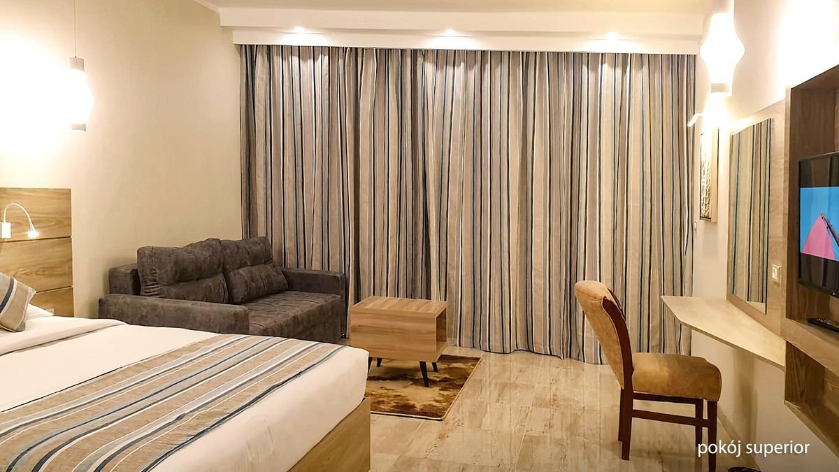•czterogwiazdkowy•zbudowany w 2009 r., odnowiony w 2023 r.•305 pokoi, budynek główny i 8 budynków z pokojami, do 2 pięter•obiekt podzielony na 2 strefy: standardowa oraz deluxe (dostępna tylko dla dorosłych z deluxe room) – miejsce bez muzyki oraz animacji, gdzie można się zrelaksować w ciszy; klienci strefy deluxe mogą korzystać ze strefy standardowej•lobby•całodobowa recepcja