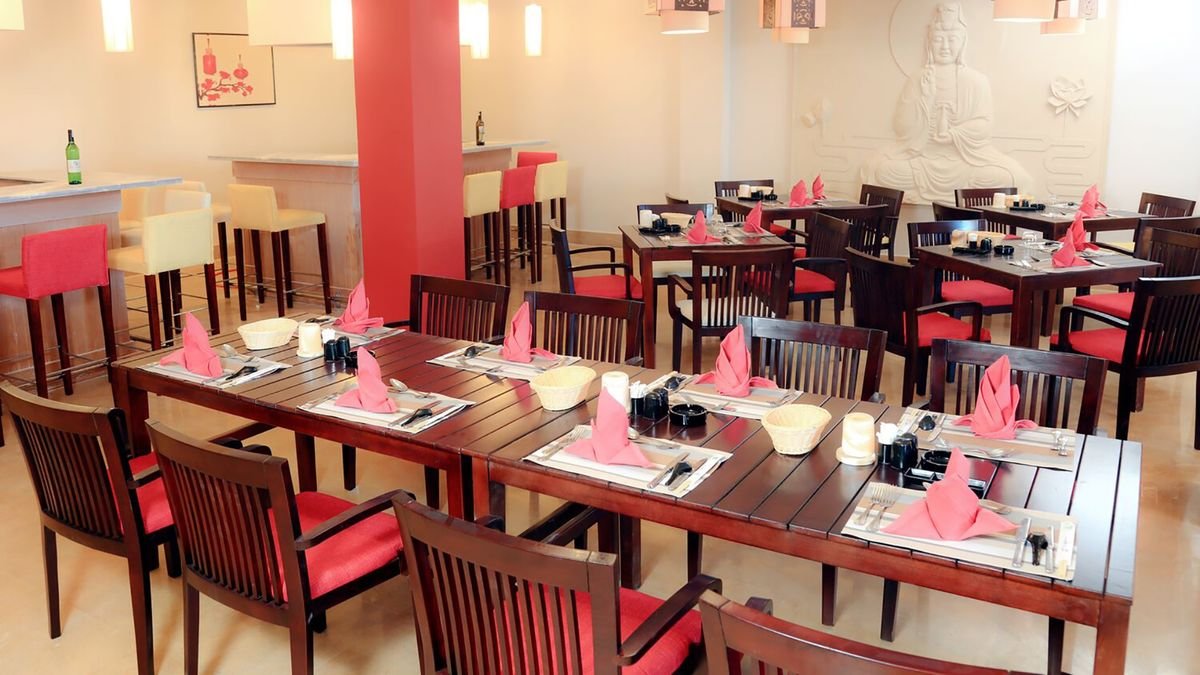 śniadanie (7.00-10.30), obiad (12.30-15.00), kolacja (18.30-21.30) w formie bufetu w restauracji głównej; słodkie przekąski w kawiarni (10.30-17.00); przekąski (12.00-14.00; 15.30-17.00) w barze przy basenie; napoje bezalkoholowe i lokalne napoje alkoholowe (10.00-24.00) w wyznaczonych barach; raz na pobyt kolacja w jednej z restauracji à la carte (wymagana wcześniejsza rezerwacja); wymagane noszenie opasek all inclusive.