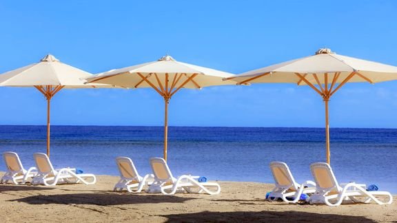 hotelowa, piaszczysta, łagodne zejście do morza, rafa koralowa, zalecane obuwie ochronne, bezpośrednio przy hotelu, pomost, bezpłatne parasole, leżaki i ręczniki; bar objęty all inclusive.