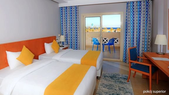 superior: 2-os. (możliwość 1 dostawki dla dziecka), ok. 40 m², indywidualnie sterowana klimatyzacja, łazienka (wanna lub prysznic, wc; suszarka), internet bezprzewodowy (limitowana prędkość), telewizja satelitarna, telefon, zestaw do kawy/herbaty, minibar (płatny), sejf; bezpłatne łóżeczko dla dziecka do 2 lat na zamówienie przed przyjazdem; balkon lub taras, widok na ogród lub basen; deluxe: 2-os. (możliwość 1 dostawki dla os. dorosłej lub 2 dzieci), ok. 48 m², wyposażenie jak w pokoju superior; pokój deluxe za dopłatą; rodzinny: 2-os. (możliwość 1 dostawki dla os. dorosłej – sofa lub 2 dzieci – łóżko piętrowe), ok. 50 m², wyposażenie jak w pokoju superior; pokój rodzinny za dopłatą; rodzinny swim-up: 2-os. (możliwość 1 dostawki dla os. dorosłej – sofa lub 2 dzieci – łóżko piętrowe), ok. 50 m², wyposażenie jak w pokoju superior, basen dzielony z 4-6 innymi pokojami; pokój rodzinny swim-up za dopłatą.
