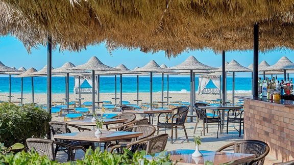 Turkusowa woda, biały piasek i delikatna, morska bryza to najkrótszy opis niepowtarzalnego klimatu, który tutaj panuje. Odpoczywaj na plaży, baw się i tańcz w świetle księżyca, korzystaj z wieczornego programu rozrywek i wybierz miejsce, w którym posmakujesz wakacji: 5 restauracji, 5 barów, kawiarnia i kącik z shishą zapewnią pełną gamę doznań. Po prostu szykuj się na moc atrakcji z rodziną! Dzieciaki pokochają zabawy w miniklubie, na basenie, placu zabaw i w czasie animacji. Nowoczesne wnętrza cieszą oko swoim śródziemnomorskim stylem, a przestronne pokoje zapewnią nieskrępowany relaks…