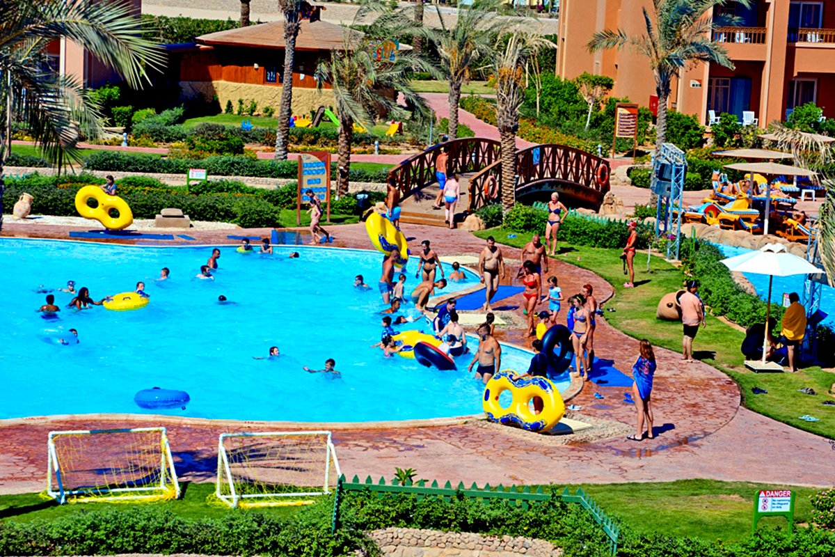 Położony na rozległym terenie, w formie kolorowej, hotelowej wioski to doskonałe miejsce na rodzinny wypoczynek pełen zabawy i wodnych szaleństw! Duży aquapark z fantazyjnymi zjeżdżalniami dla dorosłych oraz dzieci i basen ze sztuczną falą dostarczą świetnej rozrywki i niezapomnianych wrażeń. Smaczne dania serwowane w hotelowych restauracjach pozwolą przyjemnie uzupełnić kalorie po dniu pełnym atrakcji, a ładne, przestronne pokoje i przyjazna obsługa zapewnią komfortowy pobyt.