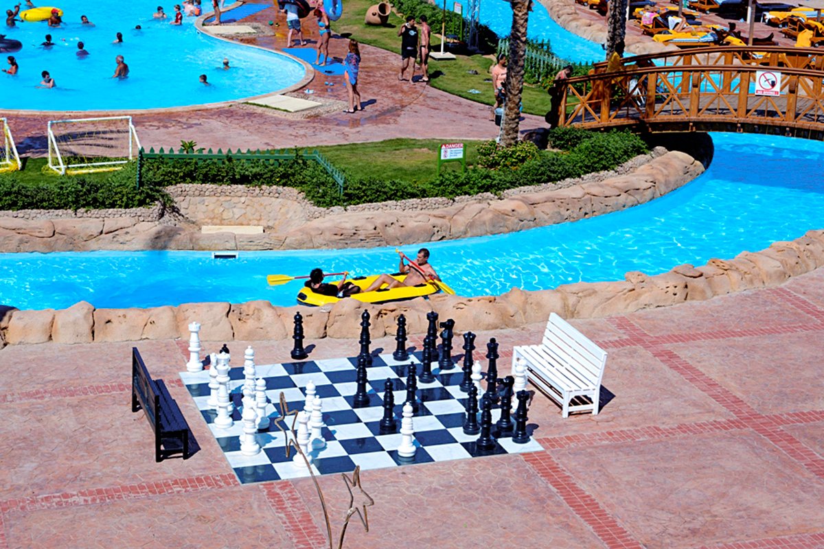 basen, słodka woda, ok. 2900 m², gł. 1,6 m, podgrzewany w okresie zimowym, wydzielona część dla dzieci, gł. 0,4 m, aquapark: 12 zjeżdżalni dla dzieci, 10 zjeżdżalni dla dorosłych, sztuczna fala, przy basenach bezpłatne parasole, leżaki, materace i ręczniki; kort tenisowy (oświetlenie płatne); plac zabaw dla dzieci, miniklub (4-12 lat), animacje dla dorosłych i dzieci: siatkówka plażowa, tenis stołowy, gimnastyka, aqua aerobik, water polo, rzutki, boccia, lekcje tańca, wieczorem pokazy i występy w amfiteatrze; centrum spa: bezpłatnie: siłownia, płatne: masaże, jacuzzi, sauna, łaźnia parowa, łaźnia turecka, salon urody.