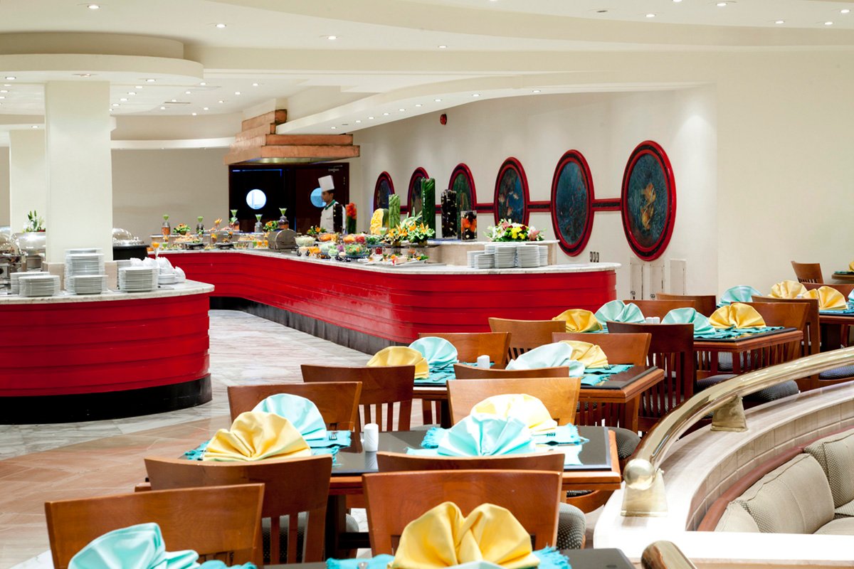śniadanie (7.00-10.00), obiad (12.30-14.30), kolacja (19.00-21.00) w formie bufetu w restauracji głównej; raz na pobyt kolacja w restauracji á la carte (wymagana wcześniejsza rezerwacja); przekąski (15.00-17.00) w Beach Snack Barze; napoje bezalkoholowe (10.30-23.00) i lokalne napoje alkoholowe (11.00-23.00) w wyznaczonych barach; wymagane noszenie opasek all inclusive.
