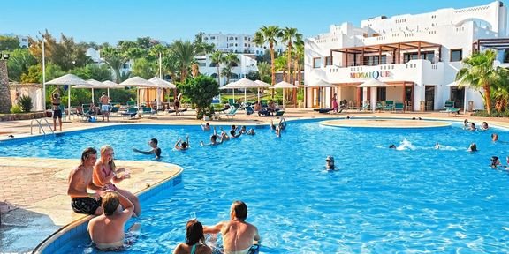 w południowej dzielnicy SHARM EL SHEIKH, ok. 5 km od centrum rozrywek w Naama Bay; ok. 7 km od portu lotniczego w Sharm El Sheikh; kilka bezpłatnych busów hotelowych na terenie kompleksu.