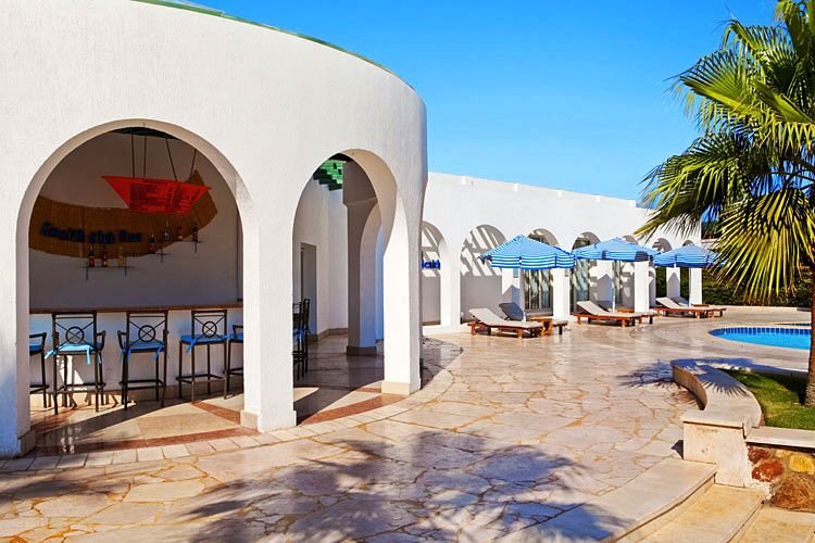 w SHARM EL SHEIKH, w dzielnicy Hadaba, w pobliżu centrum rozrywki "Alf deila Wa Leila"; ok. 7 km od centrum Naama Bay; ok. 22 km od portu lotniczego w Sharm El Sheikh; płatny bus hotelowy do Naama Bay; hotel na wzniesieniu, schodzi w stronę morza; możliwość korzystania z hotelowej gondoli kursującej z poziomu lobby przez budynki mieszkalne do kompleksu basenów.