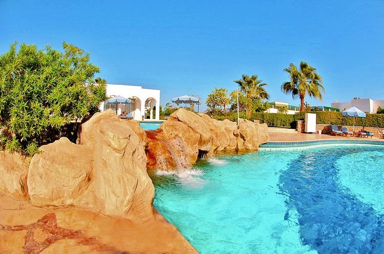 pięciogwiazdkowy, zadbany, oddany do użytku w 2000 r., sezonowo odnawiany, 401 pokoi, kilkanaście budynków, do dwóch pięter, przestronny i elegancki hol, całodobowa recepcja, restauracja główna La Cascade - dania w formie bufetu, kuchnia włoska i międzynarodowa, dostępne foteliki i menu dla dzieci, Paradise Reef - kuchnia arabska; przekąski, wieczorem à la carte (wymagana wcześniejsza rezerwacja), restauracje à la carte: Verdi's Bistro - kuchnia włoska, Shish Bish - kuchnia egipska; Cafe Shalalat w lobby, Latinos Bar, bar przy basenie, bar Tipsy Turtle przy plaży, sklep z pamiątkami, butik; sala konferencyjna dla 30 osób, taras z widokiem na basen, ogród; za opłatą: punkt internetowy, Internet bezprzewodowy w lobby, całodobowy room service, opiekunka do dziecka, fryzjer, pralnia, przechowalnia bagażu, wypożyczalnia samochodów; występują różnice poziomów; akceptowane karty kredytowe: Visa, MasterCard, American Express, Diners Club.