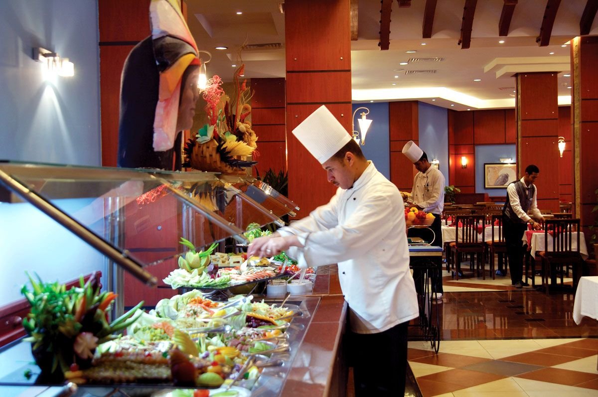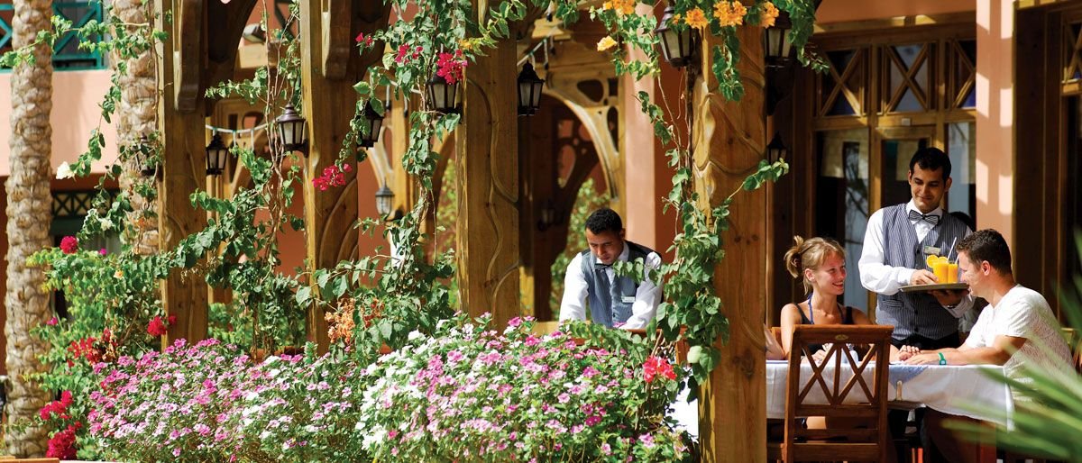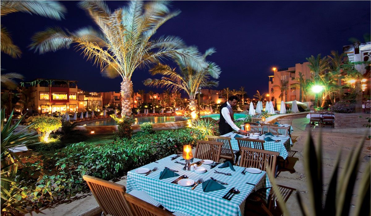 śniadanie (7.00-10.00), obiad (13.00-15.00), kolacja (18.30-22.00) w formie bufetu w restauracji głównej; późne śniadanie (10.00-12.00); przekąski pomiędzy głównymi posiłkami w Star Fish lub w snack-barze Food Court (10.00-24.00), późna kolacja (22.00-5.00) w restauracji Armando; lokalne napoje bezalkoholowe i alkoholowe (24h) w barze w lobby; w czasie pobytu 2 kolacje w restauracji włoskiej, meksykańskiej lub indyjskiej do wyboru (19.00-22.00): ustalone menu, dodatkowa konsumpcja płatna, wymagana wcześniejsza rezerwacja; all inclusive kończy się o godz. 12.00 w dniu wyjazdu.