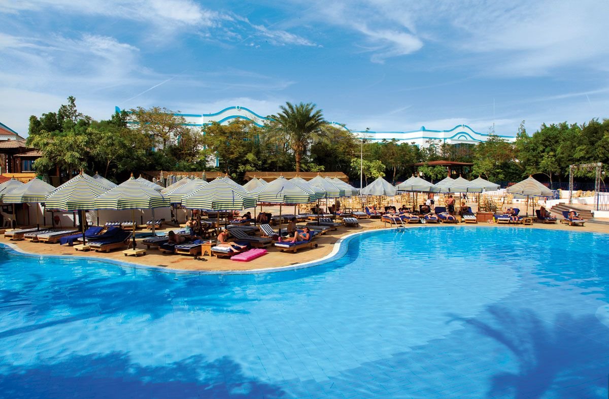 5 basenów, w tym 2 podgrzewane w sezonie zimowym, woda słodka, gł. 0,5-1,6 m, w jednym z basenów wydzielona część dla dzieci, 1 zjeżdżalnia, przy basenach bezpłatne parasole, leżaki, materace i ręczniki; siatkówka plażowa, koszykówka, piłka nożna, minigolf, tenis stołowy, badminton, siłownia; plac zabaw dla dzieci, miniklub (4-12 lat), animacje dla dzieci i dorosłych, dyskoteka Golden Club (napoje dodatkowo płatne); za opłatą: kort tenisowy z wypożyczalnią sprzętu, centrum wellness: sauna, jacuzzi, łaźnia parowa, masaże; centrum nurkowe i sporty wodne na plaży.