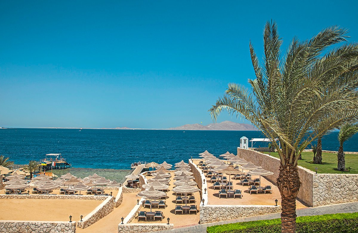 Elegancki i zadbany kompleks hotelowy położony w zatoce Shark’s Bay, z rewelacyjnym widokiem na wyspę Tiran. Posiada prywatną plażę z bezpłatnym serwisem i rafą koralową przy brzegu. Ładnie zaaranżowane baseny otoczone są palmami, jest tu również bar serwujący orzeźwiające drinki. Atutem hotelu jest piękny ogród z kolorowymi kwiatami i wypielęgnowanymi terenami zielonymi, które nadają temu miejscu wyjątkowy urok. Przestronne pokoje są praktycznie urządzone i bardzo komfortowe. Polecamy na leniwe wakacje pod egipskim słońcem.